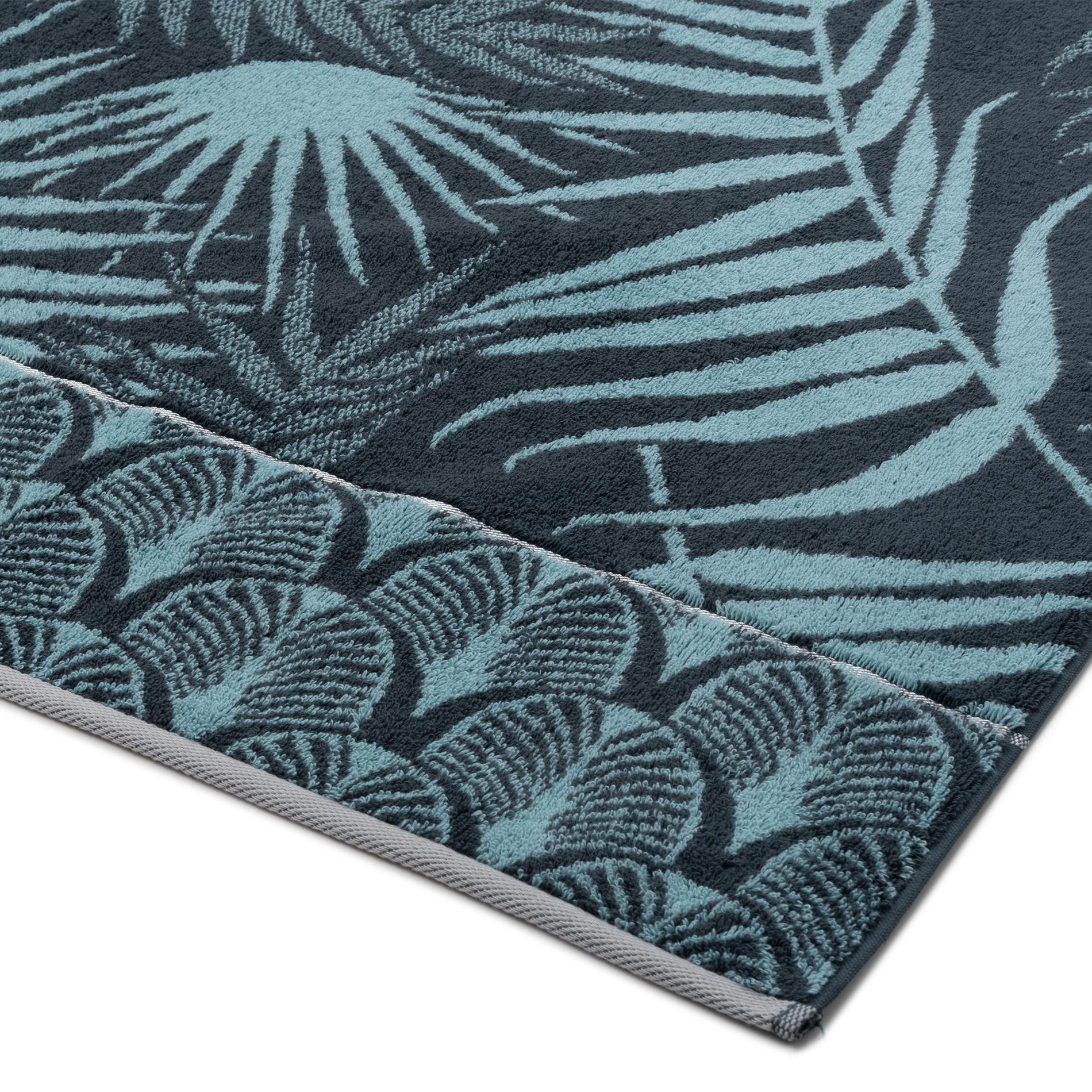 Пестротканое махровое полотенце имеет притягательный, эффектный дизайн в стиле ар-деко. Изделие выполнено в контрастном сочетании графитового и пастельно-голубого оттенков и украшено изображениями тропических листьев. Благодаря разработке (чередованию петель двух основных цветов) в основной части изделия создается визуальный эффект дополнительного оттенка. Бордюр украшен геометрическим орнаментом в стилистике ар-деко и косичкой из серебряного полиэфира. Полотенце выполнено из 100% качественного хлопка и имеет оптимальную плотность, поэтому оно очень мягкое и пушистое. А благодаря обработке махровых петель воздухом по особой технологии АЭРО оно становится еще более приятным на ощупь.
