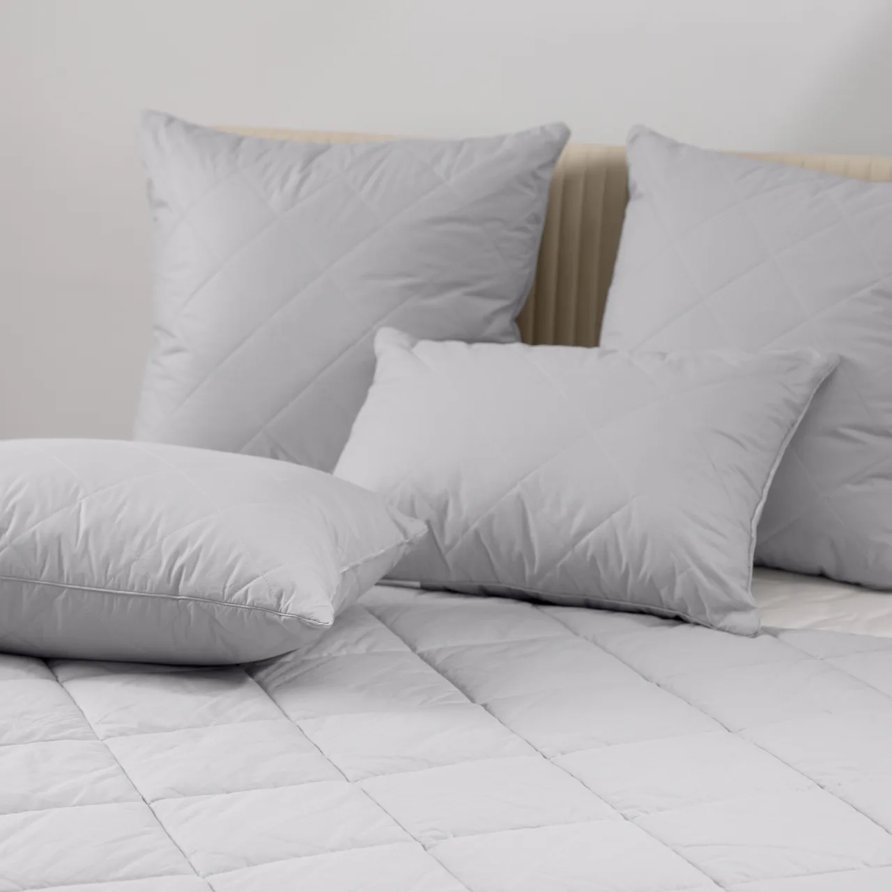 Секционная (квадратная) стёжка делит одеяло на ячейки: наполнитель меньше мигрирует, тепло распределяется равномерно по всей площади.