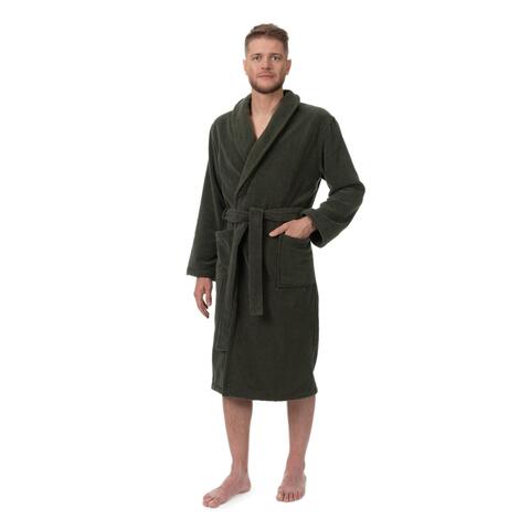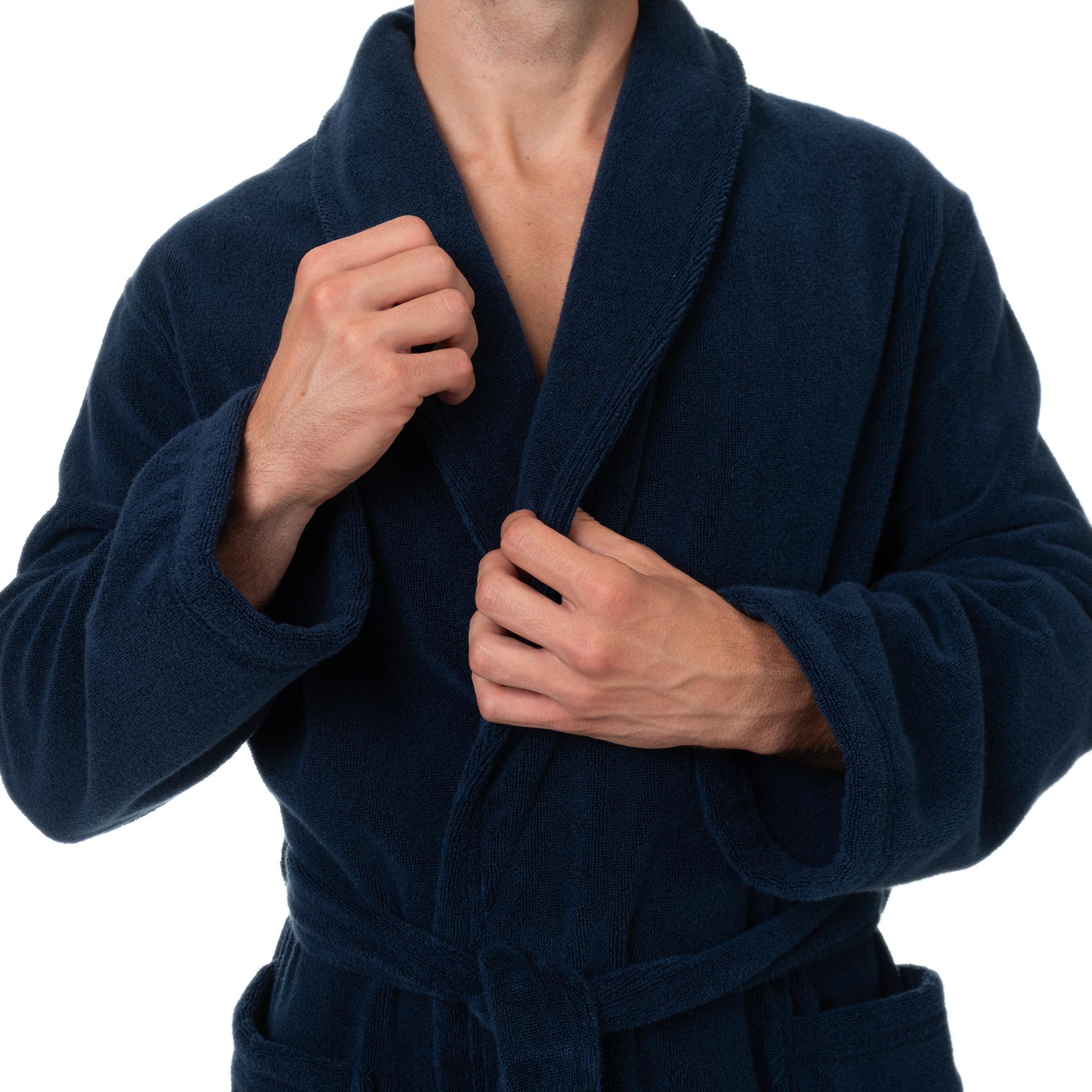 Мужской махровый гладкокрашеный халат Nobilita, представленный в двух вариациях: в оттенке зеленого мха и глубоком синей цвете, обладает особыми тактильными свойствами – исключительной мягкостью и пушистым ворсом. Такой воздушный и при этом пушистый халат особенно приятно надеть после ванной или душа – натуральная махровая ткань быстро впитывает всю влагу, пропускает воздух и дарит ощущение абсолютного комфорта. В таком халате с оптимальной плотностью комфортно в любое время года, поскольку кожа в нем «дышит». Халат выполнен в лаконичном современном стиле. Изделие с рукавами рубашечного кроя и удлиненной линией плеча оформлено воротником-шалью и накладными карманами. Халат имеет комфортную длину на 15 см ниже колен.