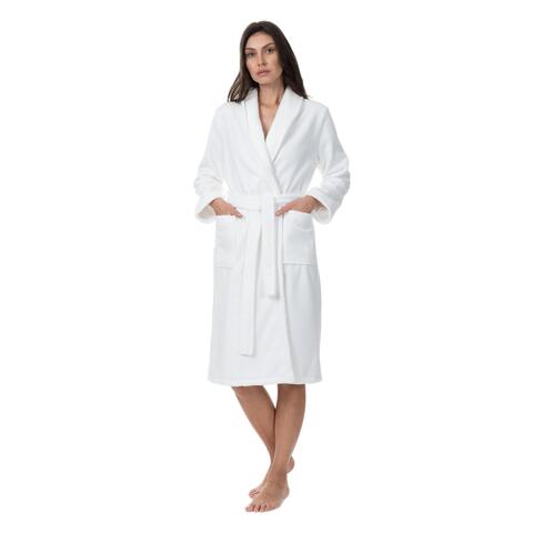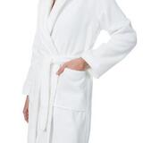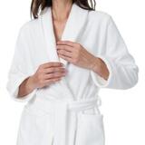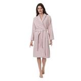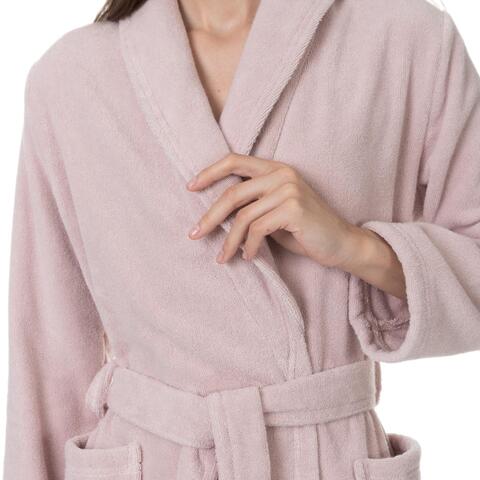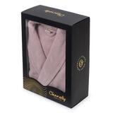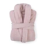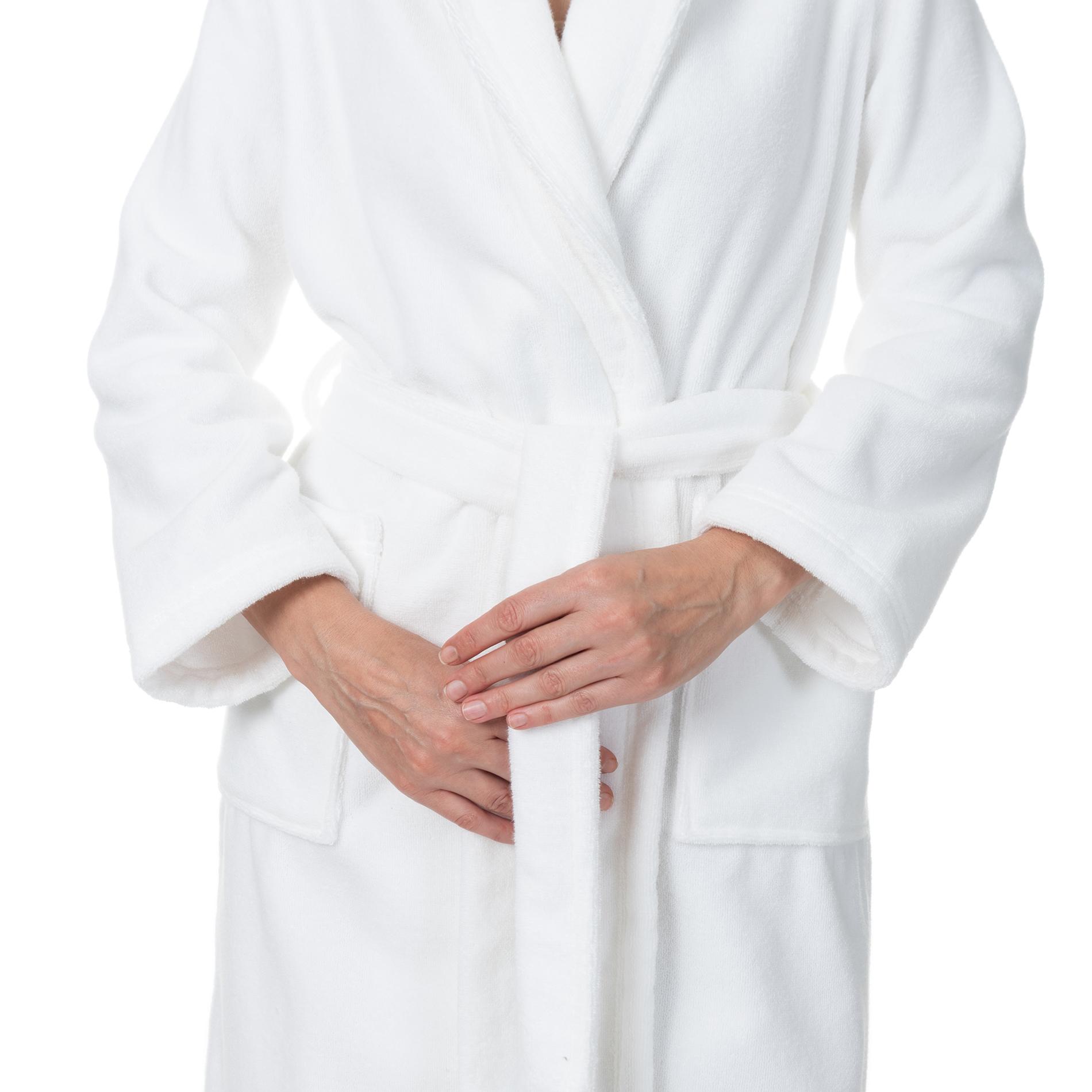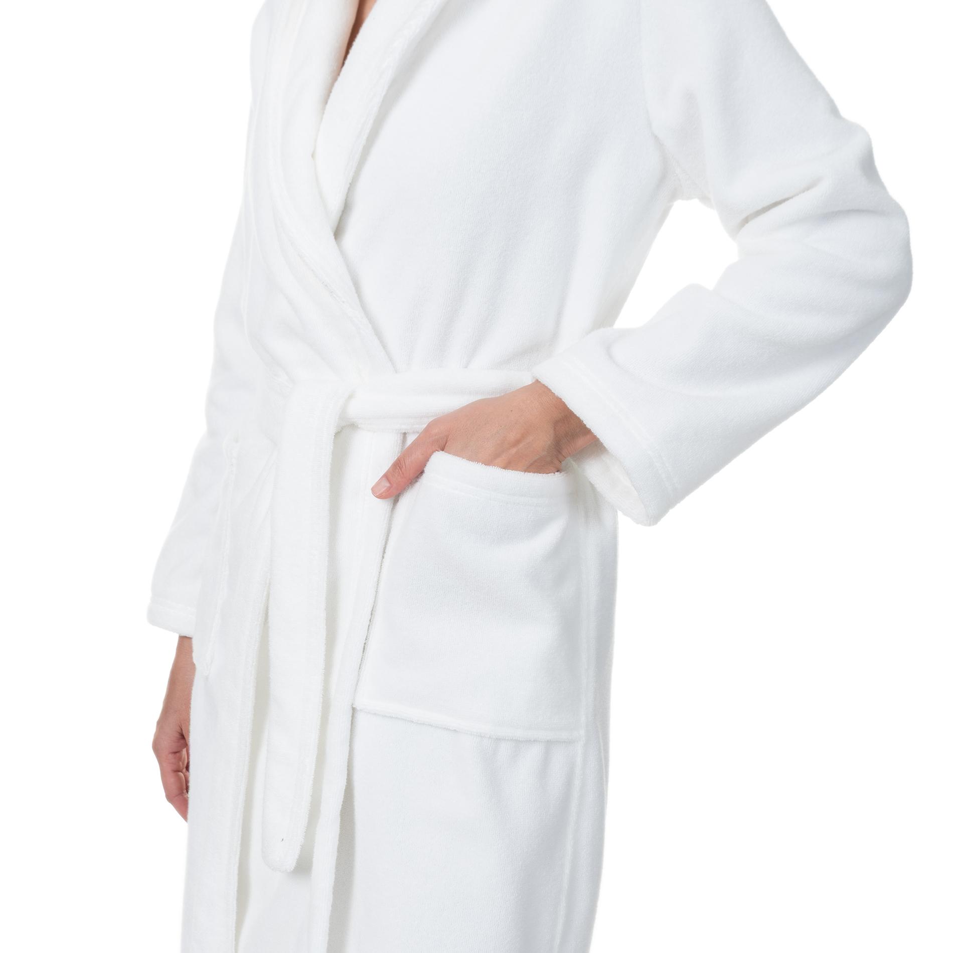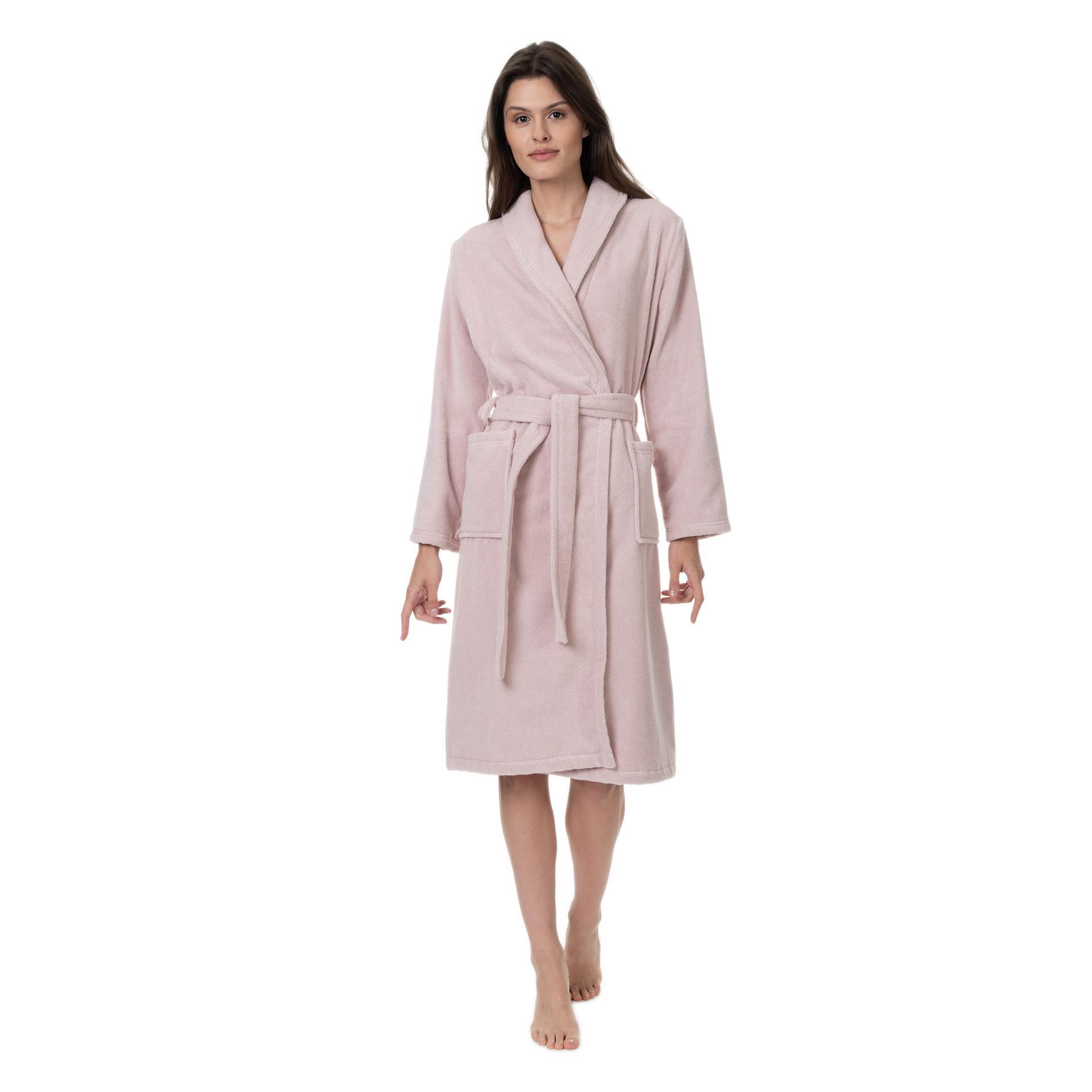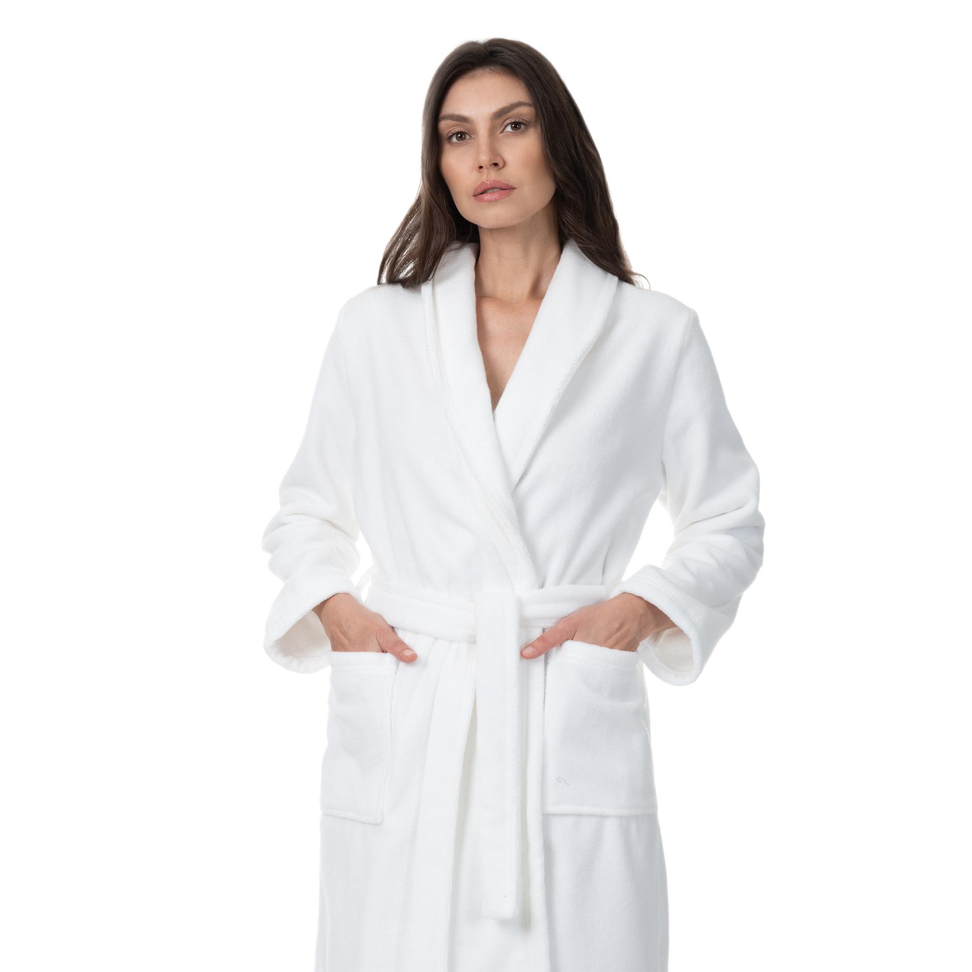Женский махровый гладкокрашеный халат Pastello delicato в чистом белом цвете и в нежном оттенке «лиловый мел» обладает особыми тактильными свойствами – исключительной мягкостью и пушистым ворсом. Такой воздушный и при этом пушистый халат особенно приятно надеть после ванной или душа – натуральная махровая ткань быстро впитывает всю влагу, пропускает воздух и дарит ощущение абсолютного комфорта. В таком халате с оптимальной плотностью комфортно в любое время года, поскольку кожа в нем «дышит». Халат имеет дорогой лаконичный дизайн и будет прекрасно сочетаться с интерьерами в неоклассическом стиле. Слегка расширяющееся к низу изделие с классической линией плеча оформлено воротником-шалью, накладными карманами, классическими длинными рукавами с манжетами и поясом. Халат имеет комфортную длину на 10 см ниже колен.