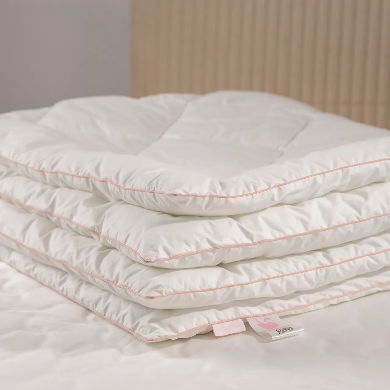 «Лебяжий пух» — это не натуральный пух, а современное гипоаллергенное полиэфирное микроволокно, создающее такой же воздушный объём и мягкость. Его выбирают как альтернативу натуральному пуху и перу.