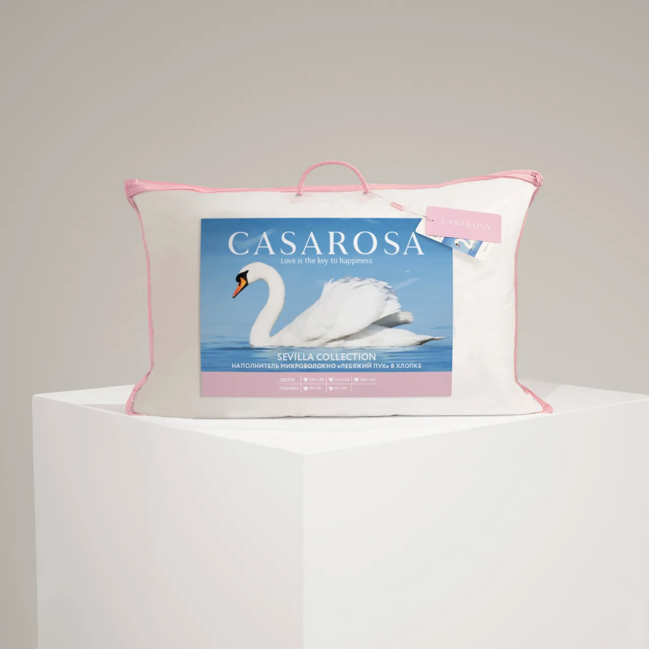 Подушка CASAROSA «Севилья» лёгкая и воздушная создана для вашего комфорта. Её секрет — в современном наполнителе DownFill (аналог пуха) и чехле из плотного хлопкового тика. Она создана для тех, кто ищет мягкость пуховых изделий, но ценит практичность: подушка гипоаллергенна, не накапливает пыль и аллергены (down-alternative обычно можно стирать в машинке).