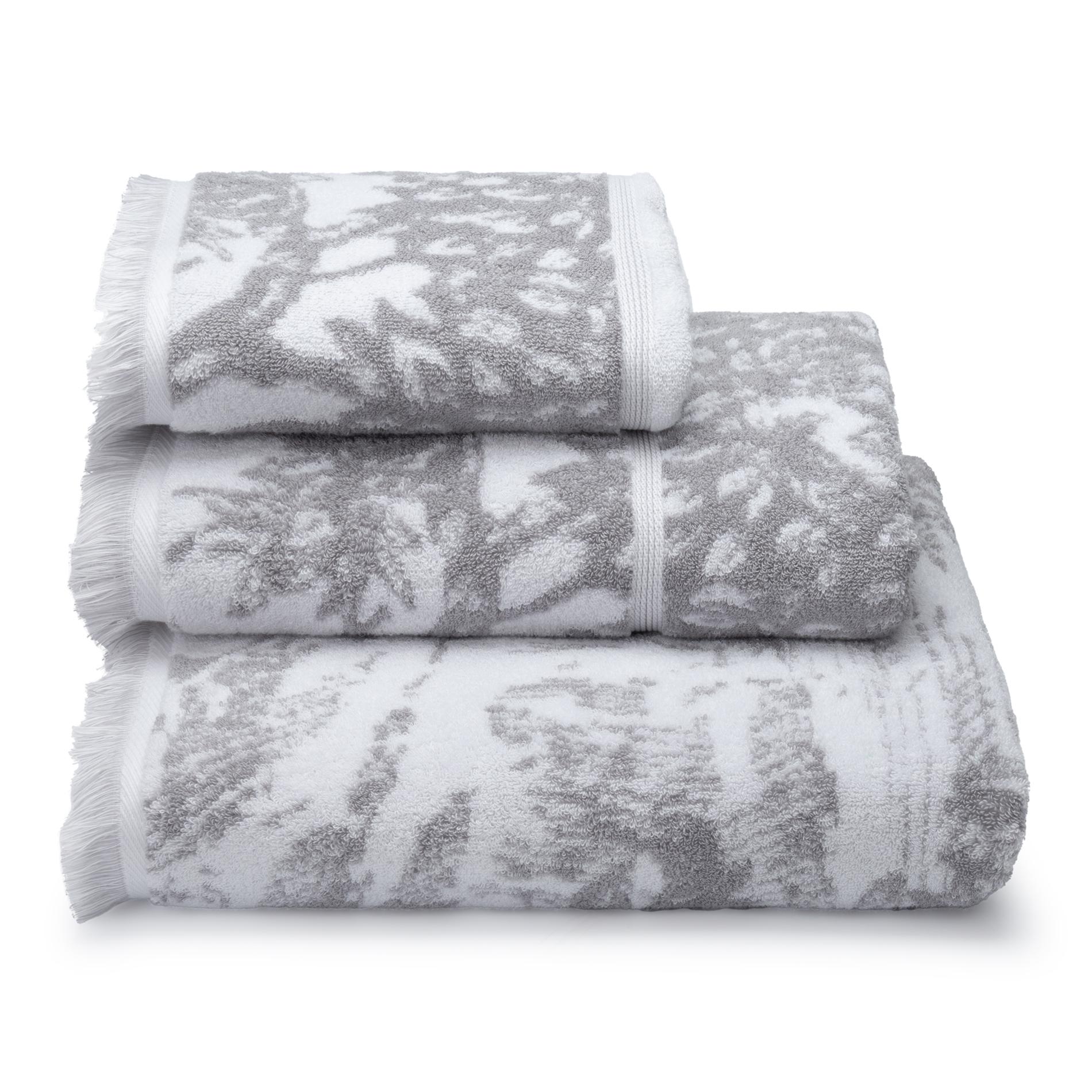 Пестротканые махровые полотенца Toile de Jouy из первоклассной хлопковой пряжи – это выразительные изделия, вдохновленные неоклассическим стилем. Сдержанная бело-серая гамма сбалансирована эффектным принтом по мотивам старинных гобеленов и ткани туаль де жуи. Элегантная и изысканная ткань туаль де жуи с ее пасторальными мотивами и сельскими пейзажами ассоциируется с французским стилем, в частности, с классическим и провинциальным. В числе дополнительных декоративных элементов на полотенце – эффект плиссе в бордюрной части и эффектная бахрома. Интересное дизайнерское решение – «перетекание» принта из основной части в бордюрную в полотенцах разных размеров. В самом большом полотенце он присутствует в основной части, в самом маленьком – в бордюрной, а в полотенце среднего размера принт занимает всю его поверхность. Полотенца с удобной петелькой представлены в трех универсальных размерах.